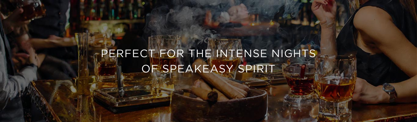 Step into the dimly lit embrace of the speakeasy club, where the air is alive with the intense aroma of rich Leather, aged Whiskey, and smoky Cigars.